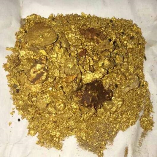 gold bars, gold dust, and gold nuggets.